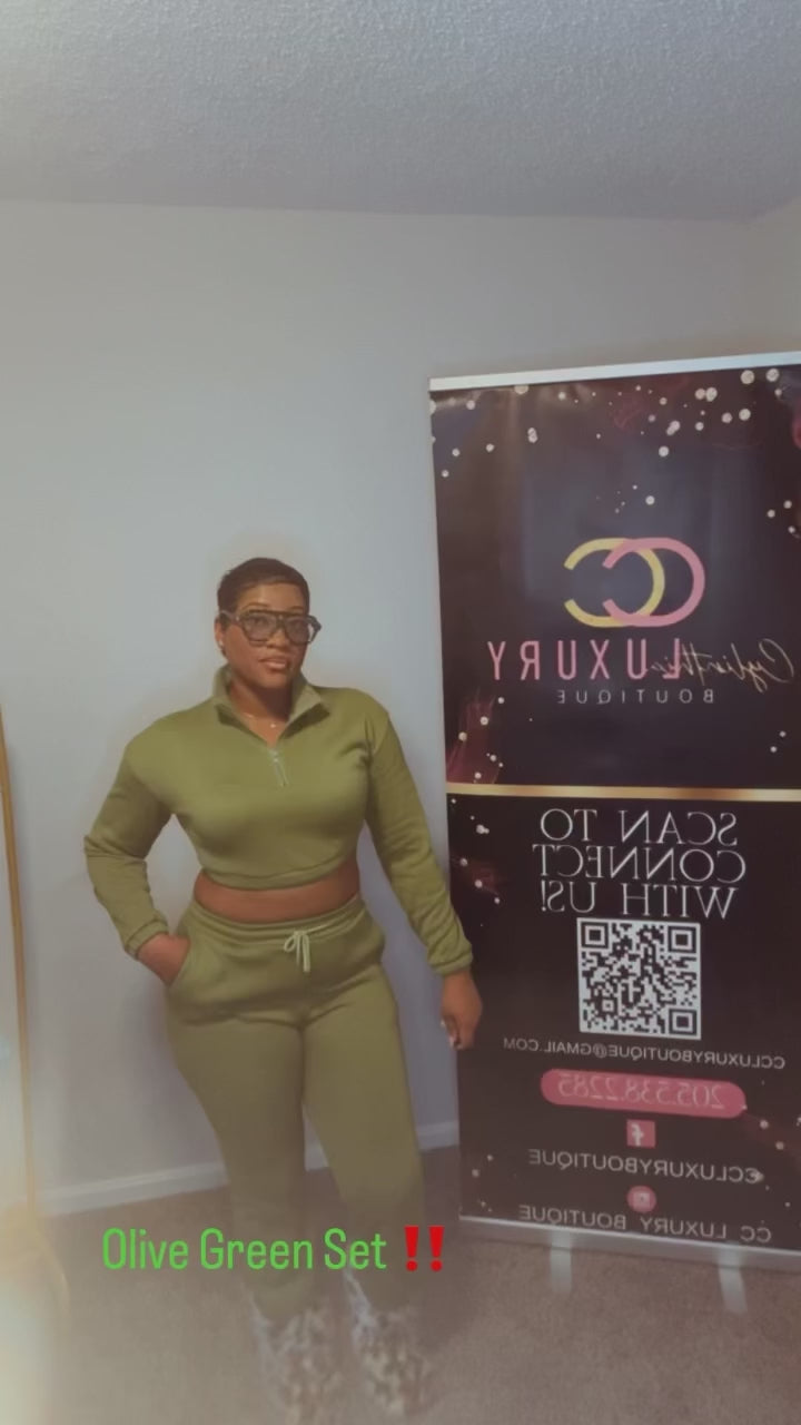 Olive Green Set model wearing a medium Great Stretchy Tall Girl Friendly